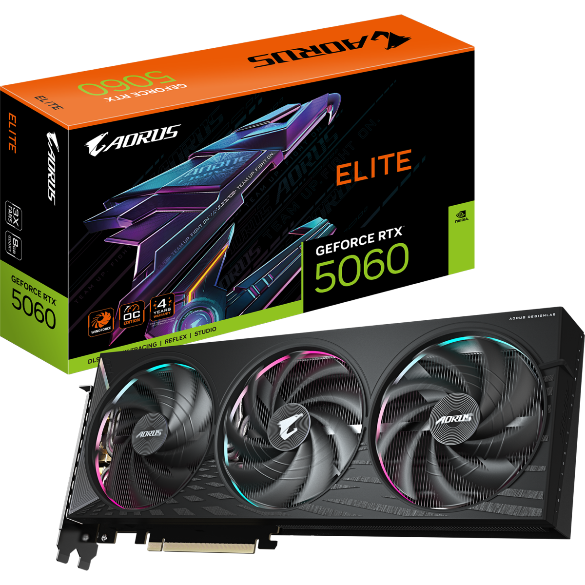 Видеокарта NVIDIA GeForce RTX 5060 Gigabyte AORUS ELITE OC 8Gb [GV-N5060AORUS E-8GD]